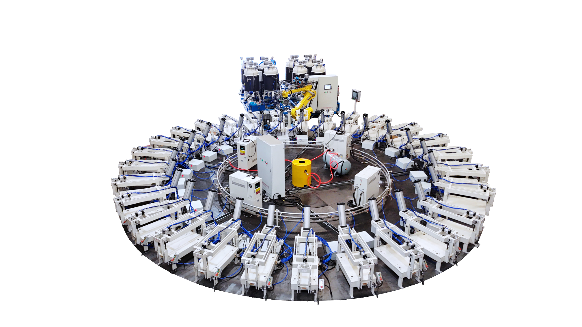 隨著社會(huì)發(fā)展,新能源汽車行業(yè)的崛起。目前汽車行業(yè)針對產(chǎn)品需求量大,為了滿足該行業(yè)的產(chǎn)品需求我們推出了高壓發(fā)泡機(jī)、低壓發(fā)泡機(jī)以及配套的自動(dòng)化生產(chǎn)線,針對不同的產(chǎn)品需求,我們提供不同的解決方案。以下是部分自動(dòng)化生產(chǎn)線解決方案。1. 全自動(dòng)圓盤生產(chǎn)線是領(lǐng)新自研的全自…